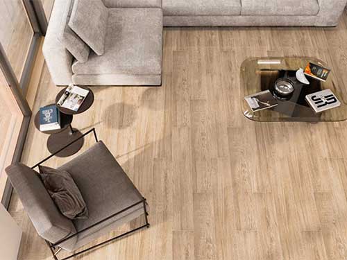 Un sol effet bois qui conjugue style et facilité d’entretien.